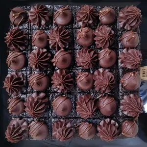The ultimate comfort cake. 8" sq rich, moist chocolate cake topped with a decadent Belgian couverture dark chocolate ganache.