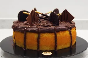 A classic & decadent couple, Chocolate + Orange. A moist almond orange cake topped with a dark Belgian dark chocolate ganache.